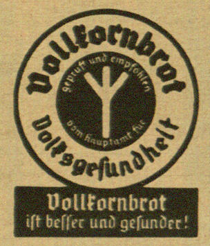 Und zum dritten eine lebensmitteltechnologische: So wurden einheitliche Richtlinien für Vollkornbrot erarbeitet und im gesamten Reich Vollkornbrot-Schulungen abgehalten. Bäcker, deren Produkte einer Überprüfung durch den RVBA genügten, durften sich als „Vollkornbrotbäcker“ bezeichnen und ihr Vollkornbrot mit dem offiziellen Gütezeichen in Form einer Lebensrune kennzeichnen. 1941 existierten schon 22.903 Vollkornbrot-Bäckereien, 1943 waren bereits 23 % aller Bäckereien anerkannte Vollkornbrotbetriebe.