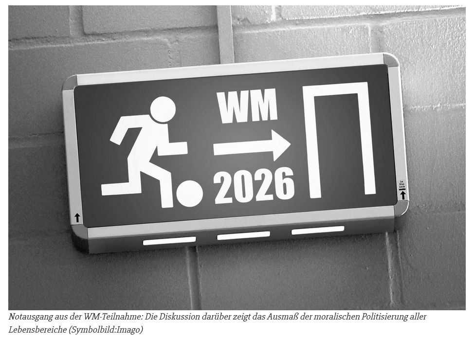 Nicht der Instrumentalisierungsgrad des Fußballs ist das Problem, sondern das Ziel der Instrumentalisierung. Gegen eine islamische Erdölmonarchie mahnt Blome zur Mäßigung; gegen einen unliebsamen westlichen Präsidenten fordert er Härte. Moral wird zur Richtungsangabe: nach Osten Pragmatismus, nach Westen Boykott.