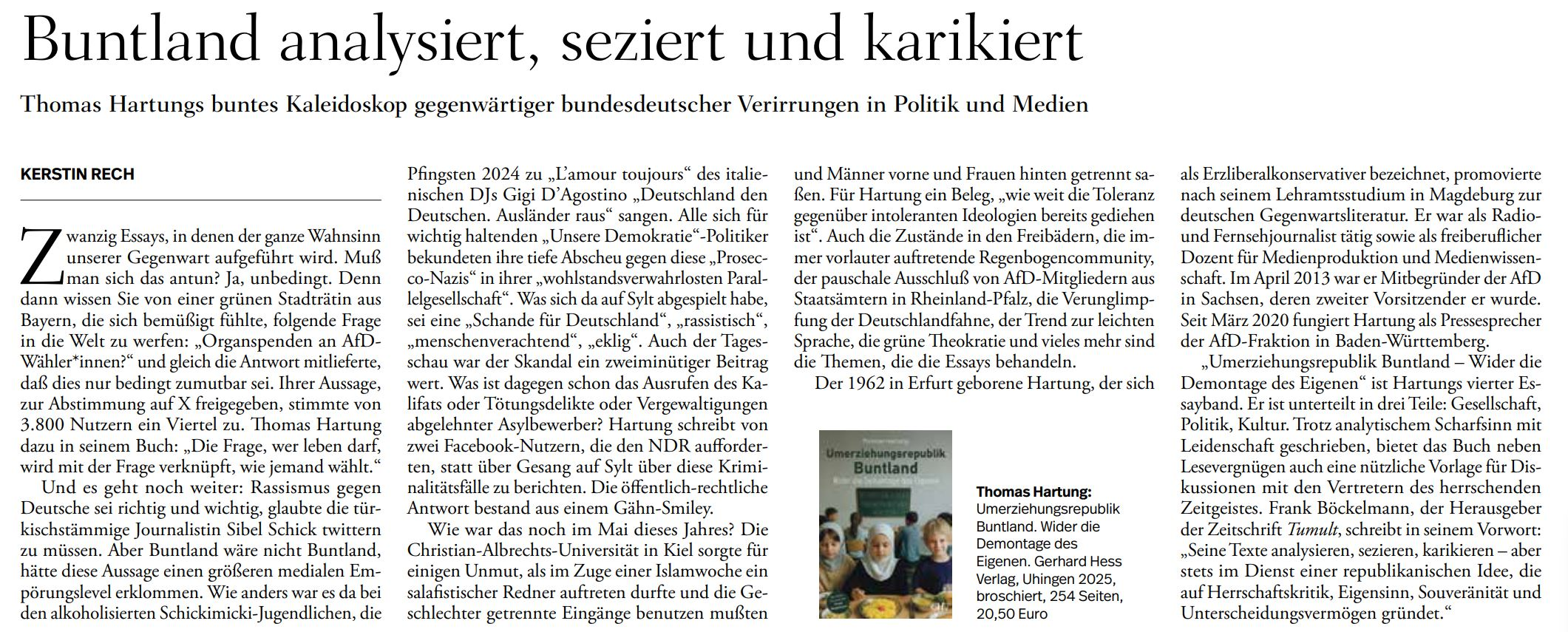 Als AfD-Landtagsfraktionspressesprecher und Freier Journalist für konservative Medien blogge ich unregelmäßig Betrachtungen zu Interessantem und Wissenswertem aus politischer und Alltagskultur. Ich schreibe regelmäßig für „Zuerst“ und habe unter dem Titel „Negerkuss und Nazistuss“ eine eigene Kolumne beim Tumult-Blog.