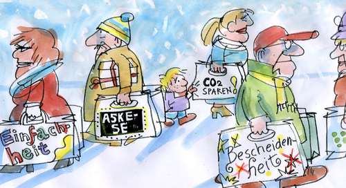 Moment mal – was für Ansprüche sind das, und vor allem wessen??? Der gefühlte Anspruch auf einen Lebensstandard mit mehreren Urlaubsreisen, mehreren Autos pro Familie und dem täglichen Wegwerfen von Nahrungsmitteln? Dem „Spiegel“ scheint eher das „Höchstmaß an Opferbereitschaft“ heute vor allem darin zu bestehen, bis zu zwölf Monate auf die Auslieferung des bestellten Porsche Cayenne warten zu müssen.