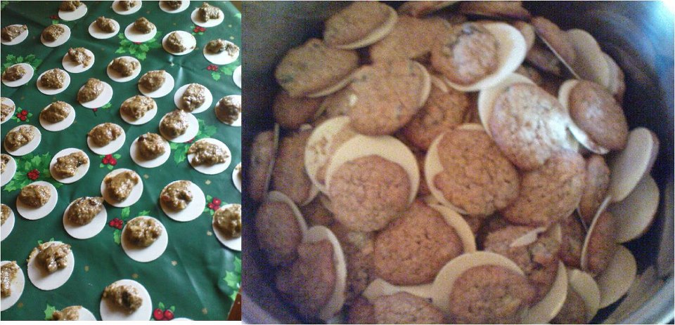 6 Eier 400 gr Zucker 120 gr. Mehl /1/2 Tüte Backpulver 70 gr. Orangeat 70 gr. Zitronat 400 gr gem. Mandeln 100 gr. gem. Nüsse 50 gr. kleingehackte Marzipan-Rohmasse 50 gr. kleingehackte, in Rum eingelegte Rosinen 1 EL Honig 1 TL Ahornsirup 1 TL Zimt Je ½ TL Kardamom, Nelken, Piment, Ingwer (alternativ 1 Btl. Lebkuchengewürz) Geriebene Zitronen- und Orangenschale (alternativ Backaroma) OblatenDie Eier mit dem Zucker und viel Liebe schaumig rühren. Mehl und Backpulver mit den Gewürzen vermischen und hinzufügen. Zitronat / Orangeat mit den Rosinen, der Marzipan-Rohmasse, dem Honig, den Aromen und dem Sirup gut vermischen und einarbeiten.