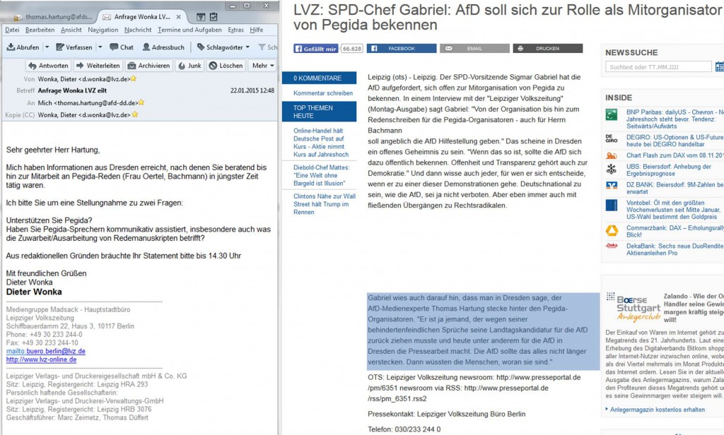 2b) Wie u.a. dieser „Freie Presse“-Text zeigt, wurde die damalige Annäherung von AfD und Pegida sehr wohl wahrgenommen.