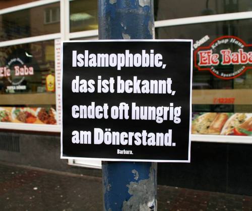 Als weitere Erklärung muss die NPD herhalten. So wurde Safet Babic, ein Trierer NPD-Politiker mit Migrationshintergrund, im September 2015 beim Verdrücken dieser türkischsten aller germanischen Speisen ertappt. Der gebürtige Deutsche mit bosnischen Wurzeln verstieß damit gegen die deutschnationalen Speisegesetze, hatte doch die NPD Stuttgart ihre Mitglieder aufgefordert, „lieber kalte schwäbische Maultaschen als warmen Döner“ zu essen. Die anonyme Aktionskünstlerin „Barbara“ reimte darauf: „Islamophobie, das ist bekannt, endet oft hungrig am Dönerstand“. Aber auch „Deutschland ist schön doch noch viel schöner ist es mit Pizza, Sushi und Döner“ wird ihr zugeschrieben.