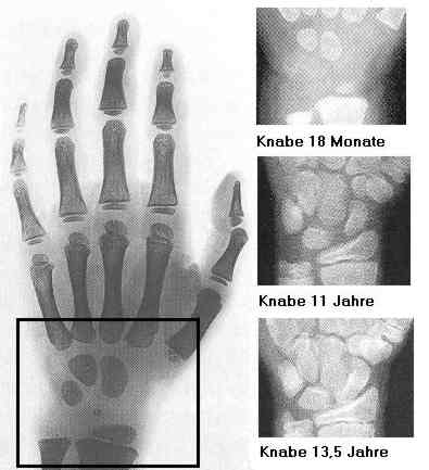 Überdeutlich wurde das in der Stellungnahme der Deutschen Gesellschaft für Kinder- und Jugendpsychiatrie, Psychosomatik und Psychotherapie e.V. (DGKJP) vom November 2015, in der als häufigste Art der Knochenaltersbestimmung die Bestimmung des Knochenalters nach „Greulich und Pyle“ erwähnt wurde. Der als Referenz herangezogene Atlas basiere aber „auf einer Population aus den 1930er Jahren und beachtet nicht, dass das mittlere Knochenalter je Altersgruppe in den letzten 80 Jahren deutlich angestiegen ist“. Dazu kämen Differenzen zwischen verschiedenen Ethnien, wie das „Deutsche Ärzteblatt“ (Jg. 111, Heft 18, 2. Mai 2014) berichtete, und fehlende Normwerte für die jeweils einzelnen Ethnizitäten. Deswegen könne eine Handröntgenaufnahme somit keine wissenschaftliche Methode darstellen, sondern im Gegenteil eine unnötige, medizinisch nicht verantwortbare Strahlenbelastung; das gälte auch für die „modernere“ und weniger strahlenbelastende Methode einer „Computertomographie des Sternoclaviculargelenkes“.