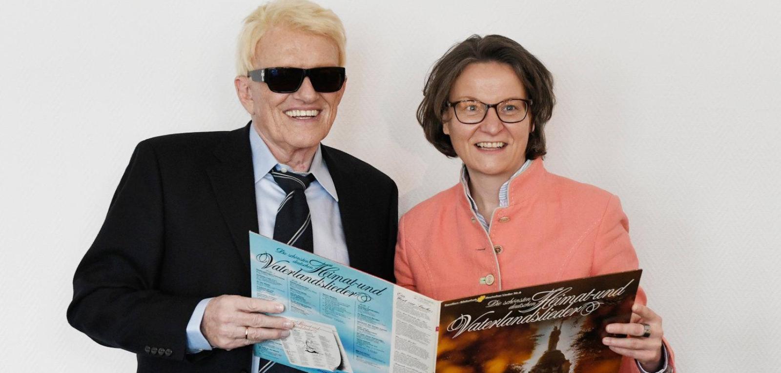 Der Barde wollte einige Wurzeln in einem individuellen Geschenk an Scharrenbach sichtbar machen: seinem Doppelalbum „Die schönsten deutschen Heimat- und Vaterlandslieder“ von 1981. Hätte er das mal lieber gelassen. Auf dem Cover der Schallplatte ist zwar der Vermerk enthalten, Kinder könnten damit im Schulunterricht bestens „mit dem deutschen Liedgut vertraut gemacht werden“. Aber manche der 24 Lieder wurden zu Hitlers Zeiten auch ins „Liederbuch der SS“ aufgenommen.