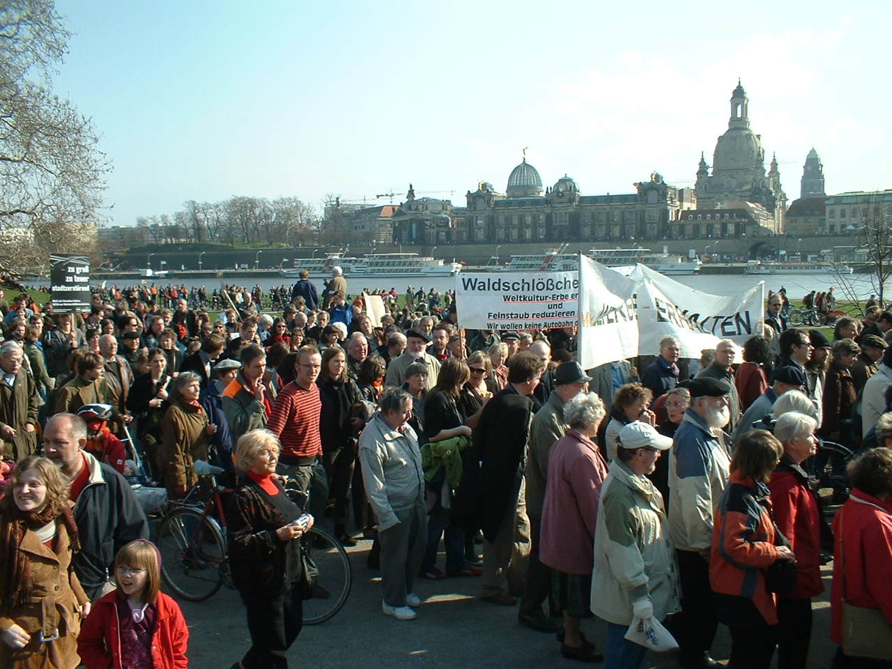 Brückenprotest in Dresden. Quelle: https://de.wikipedia.org/wiki/Dresdner_Br%C3%BCckenstreit#/media/File:Welterbedemo250307.jpg