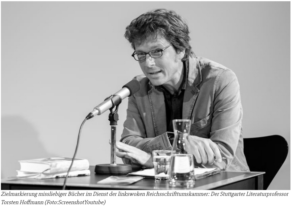 „In Buchhandlungen, Feuilletons oder Nischenzeitschriften ringen Ideologien um kulturelle Dominanz, und die Literaturpolitik ist zum Schlachtfeld avanciert. Torsten Hoffmann, Literaturwissenschaftler an der Universität Stuttgart, verkörpert mit seinem von der Deutschen Forschungsgemeinschaft (DFG) geförderten Projekt namens „Neurechte Literaturpolitik“ einen Frontposten dieses Kampfes.“