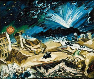 Ludwig Meidner, Apokalyptische Landschaft (1913) © Ludwig Meidner-Archiv, Jüdisches Museum der Stadt Frankfurt am Main. Quelle: http://lyrik.antikoerperchen.de/jakob-van-hoddis-weltende,textbearbeitung,67.html
