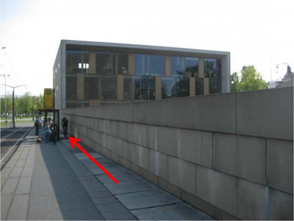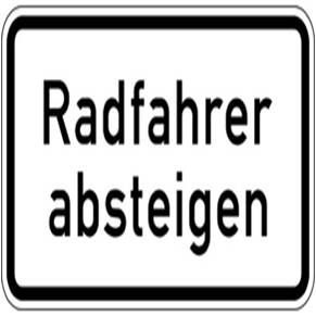 Schon das Schild muss Widerspruch fordern. Abgesehen davon, dass sich ein Remscheider mit einer aktuellen Petition beim Deutschen Bundestag seit Juni letzten Jahres dafür einsetzt, das Verkehrszusatzzeichen wegen Dopplung abzuschaffen (mit dem Zeichen 254 „Verbot für Radfahrer“ existiert schon eins): laut ADFC kann „Radfahrer absteigen“ als Zusatzzeichen kein Ge- oder Verbot enthalten und darf auch nicht einzeln aufgestellt werden. Im Verkehrszeichenkatalog steht es unter „sonstige Hinweise durch verbale Angaben“, werde aber von Behörden und Straßenbauunternehmen oftmals als Verbotsschild missbraucht. Außerdem zeigt es nicht an, für welche Streckenlänge diese Anordnung gilt: es ist damit möglich abzusteigen, sofort wieder aufzusteigen und weiterzufahren. In der StVO wird es allerdings an keiner Stelle erwähnt. Wer die Aufforderung des Zeichens nicht befolgt, kann auch nicht per Verwarnungs- oder Bußgeld bestraft werden, da das Zeichen auch im Bußgeldkatalog nirgends erwähnt wird. Weil es keine verkehrsrechtliche Wirkung hat, bleibt nur die mögliche zivilrechtliche Bedeutung. Die zuständige Straßenverkehrsbehörde möchte insbesondere an bestimmten Gefahrenpunkten Radfahrern die Weiterfahrt untersagen, weil die Behörde die Gefahr nicht beseitigen kann oder will. Mit der Aufstellung des Schildes „Radfahrer absteigen“ besteht für die Behörde daher die Möglichkeit, sich der Amtshaftung zu entziehen und das Risiko der Weiterfahrt auf den Fahrradfahrer zu übertragen. Das einzige Risiko an dieser Stelle ist die Schmalheit des Wegs durch DVB-Wartehäuschen bzw. Synagogenecke. Aber wer das normale Personenaufkommen an normalen Wochentagen auf diesem Abschnitt kennt, weiß um die Promillezahl dieses Risikos.